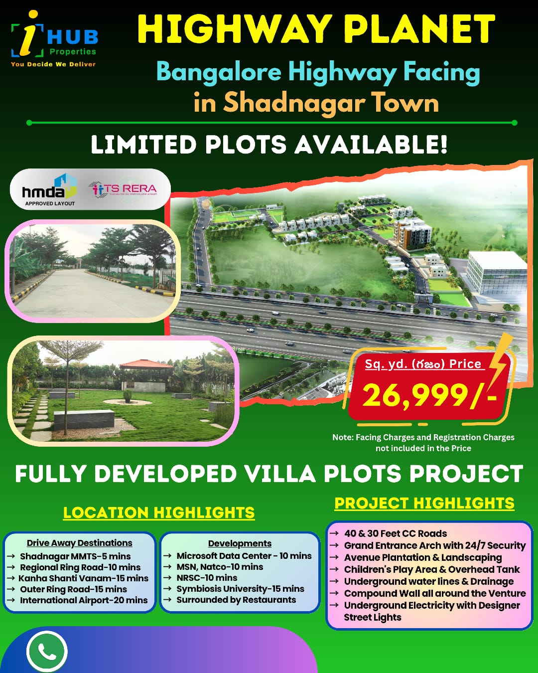 Our Sites Are : Shadnagar • Kadthal • Bhuvanagiri • Yadagirigutta • Srisailam Highway .